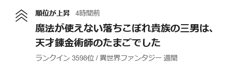 錬金術師、順位上がりました! ありがとうございます。