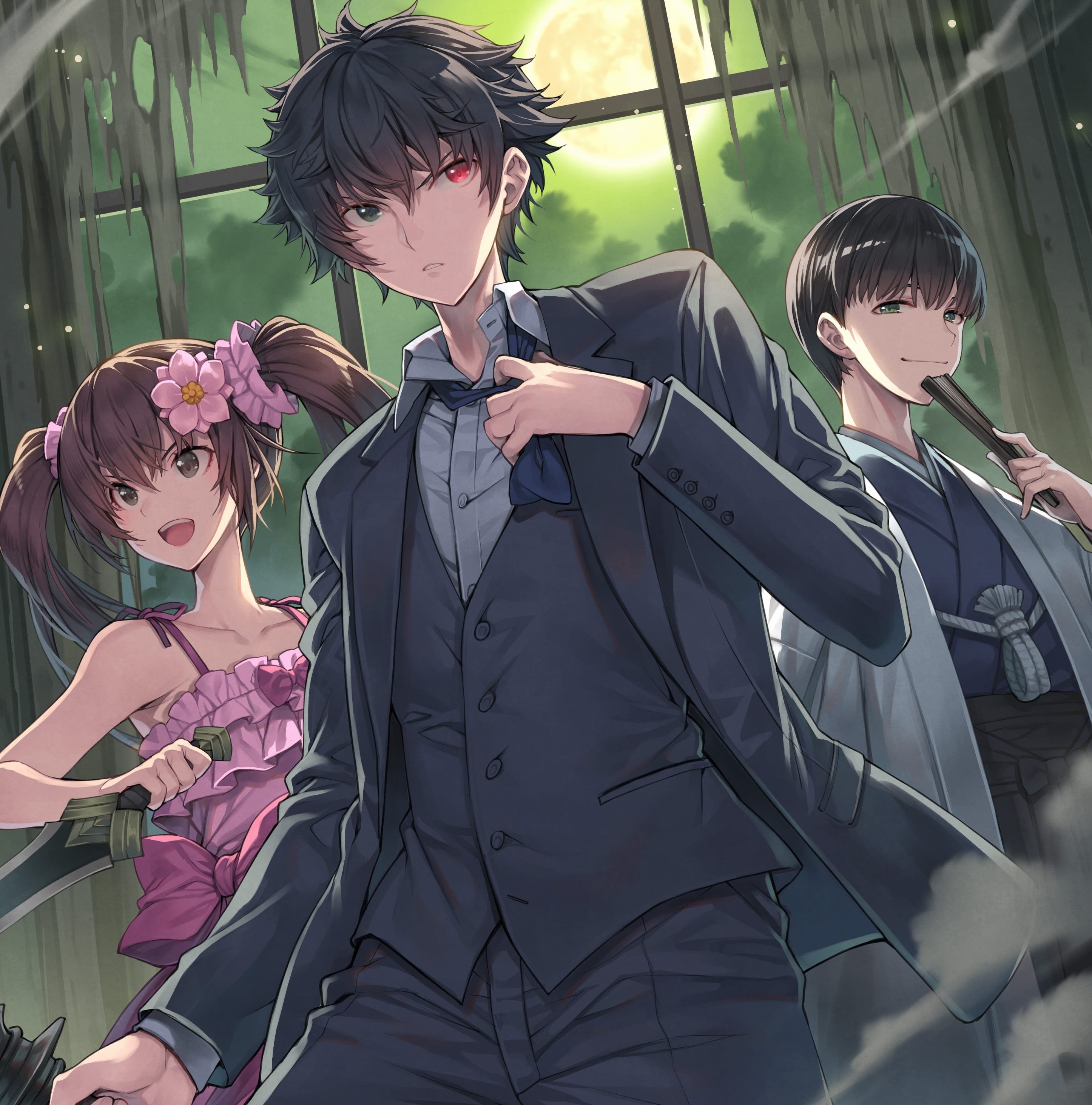 ついに「災悪のアヴァロン」も7巻! こちらがカバーイラストの一部。月明かりが背後から怪しく降り注ぐ中、主人公の颯太君と、妹の華乃ちゃんが「やってやるぞ!」という気迫に満ちた姿で描かれています。滅茶苦茶カッコいい! そして……おや? この意味深な視線を送ってくる見慣れない袴姿のキャラは一体!?