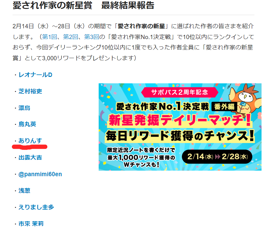 愛され作家No.1決定戦・番外編 <新星発掘デイリーマッチ!>
