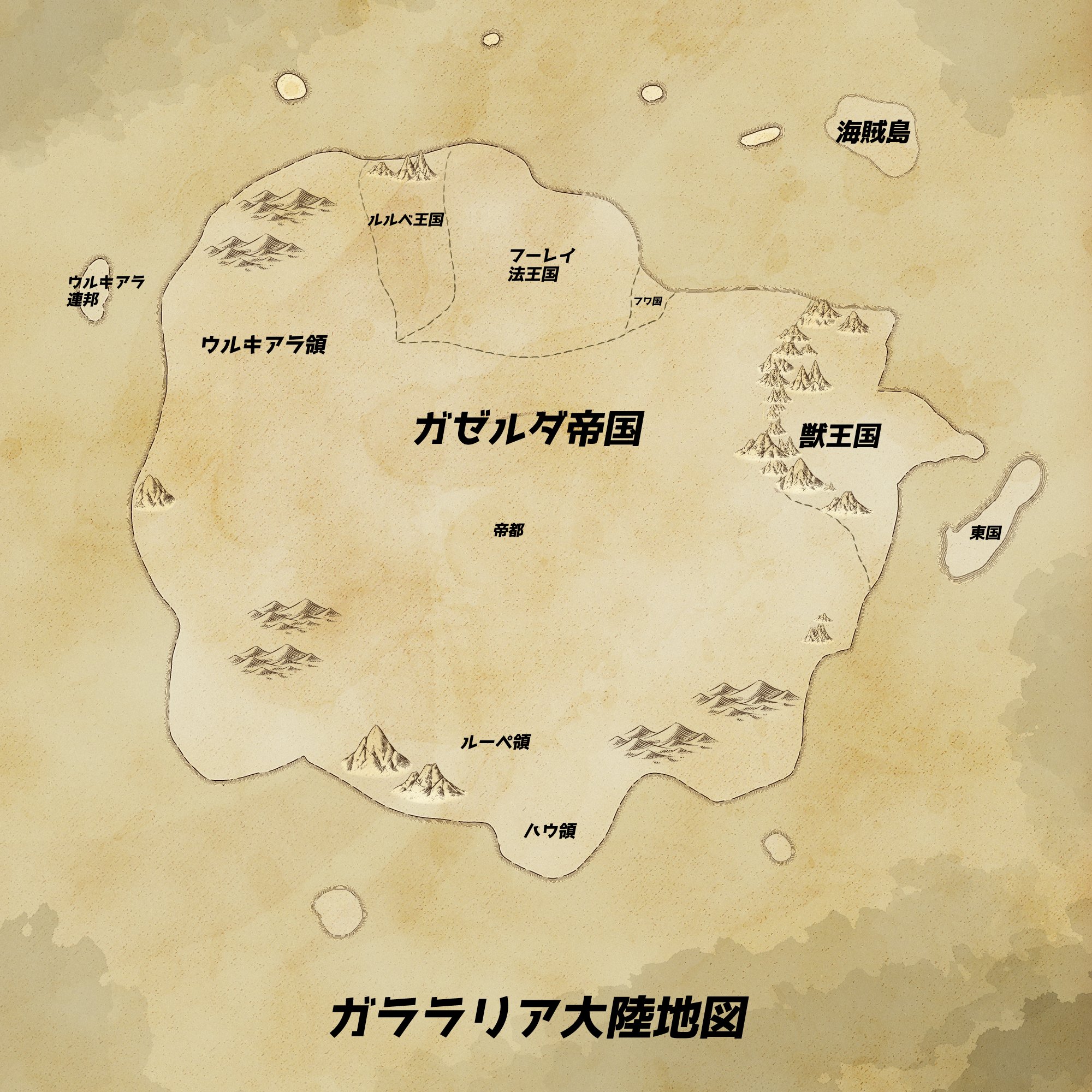 執筆の合間にチマチマ作っていたガララリア大陸地図です。