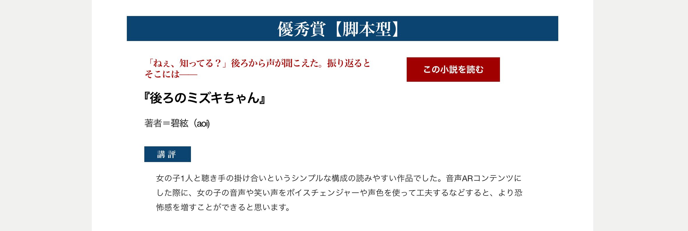 SARF×カクヨム短編こわ〜い話コンテストで、優秀賞に選んでいただきました。