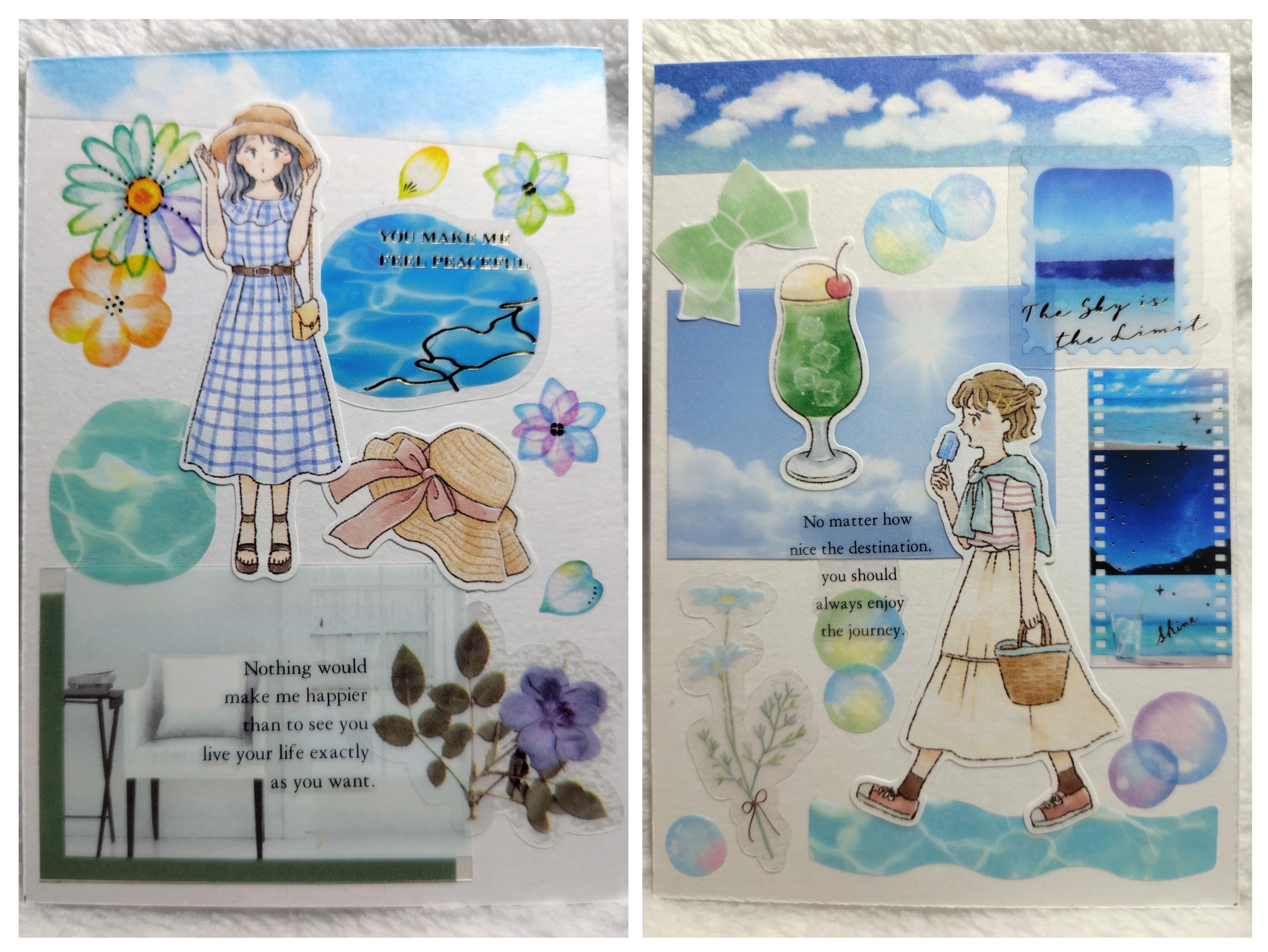 さて、コラージュもしていたということなんですが、今回本当は1作の予定だったのですけれど、どうにもこの2人を同じフレームにいれるのが難しくて、えいやっと台紙を真っ二つに。それぞれ独立させたことで珍しい同日作成の姉妹作品になりました。主役のサイズにもよりますけれど、私にはこのサイズが一番作りやすいのかもしれません。
