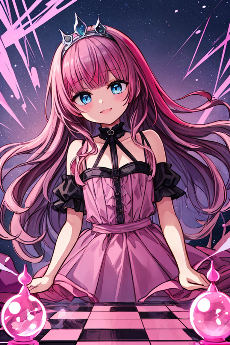 彼女は、『ピンクの髪に夜会風ドレスを着て、優雅で上品な仕草をする17才の少女』です。