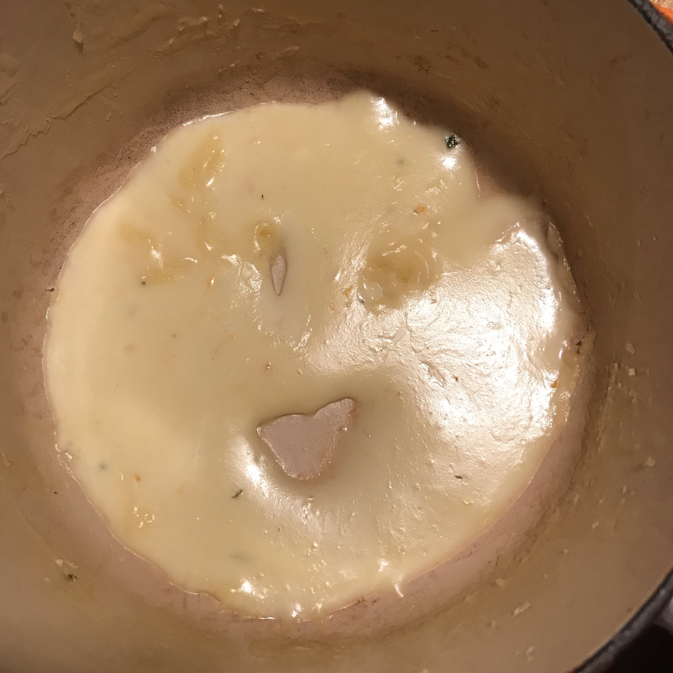 チーズフォンデュの食べ終わった後のお鍋に愛嬌がありますね。