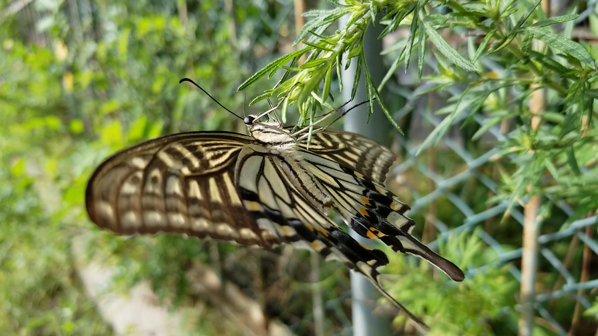 道で、草にとまったアゲハ蝶が『羽根を閉じ、次に180度に開く』という不思議な動作を繰り返していました。とまっている草が傾いて自分の身体が逆さになっても、アゲハ蝶は不思議な動作を止めません。