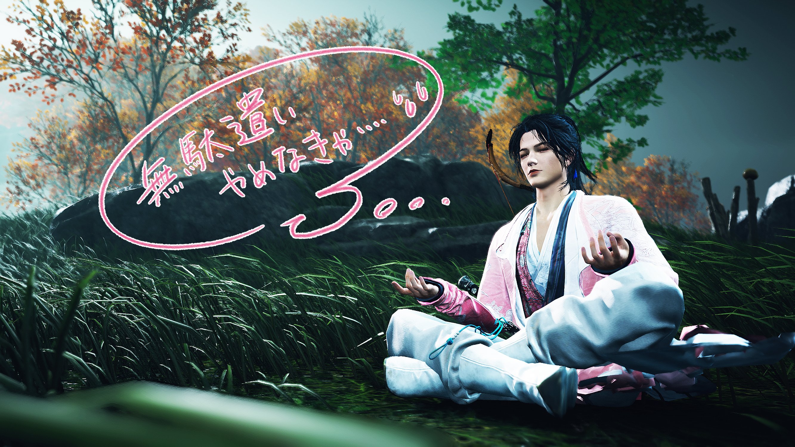 添付画像は、風燕伝のスクショ。物欲を押さえるために瞑想中???(笑)