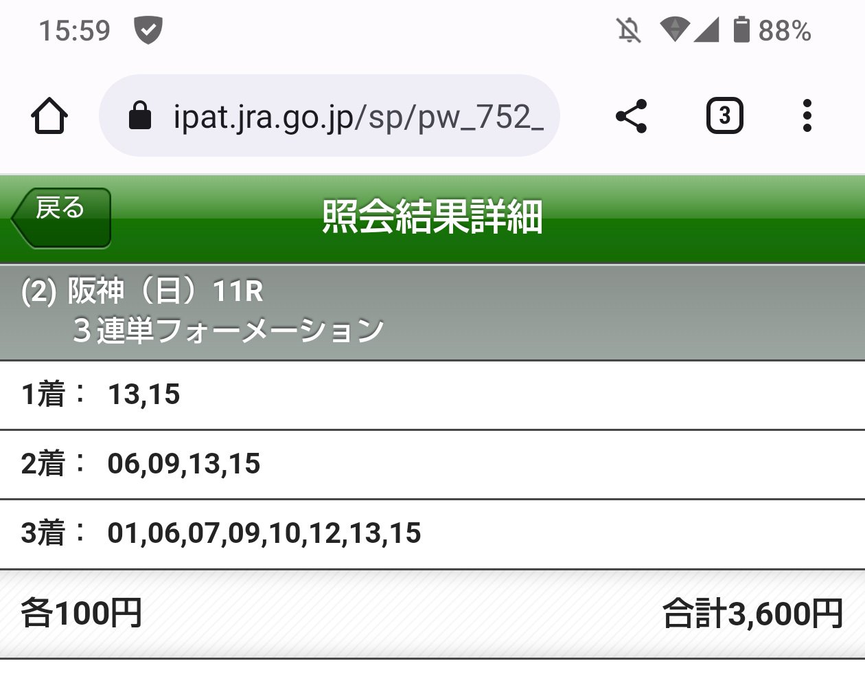 中山記念以来10万馬券取れるかも!思いましたが、タテ目でした。。10万3000円が。。。。