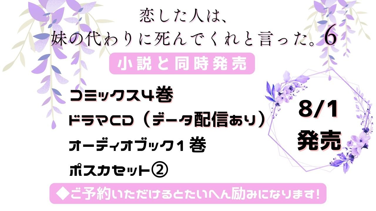【発売中】「恋した人は、妹の代わりに死んでくれと言った。」6巻&コミック4巻、ドラマCD他