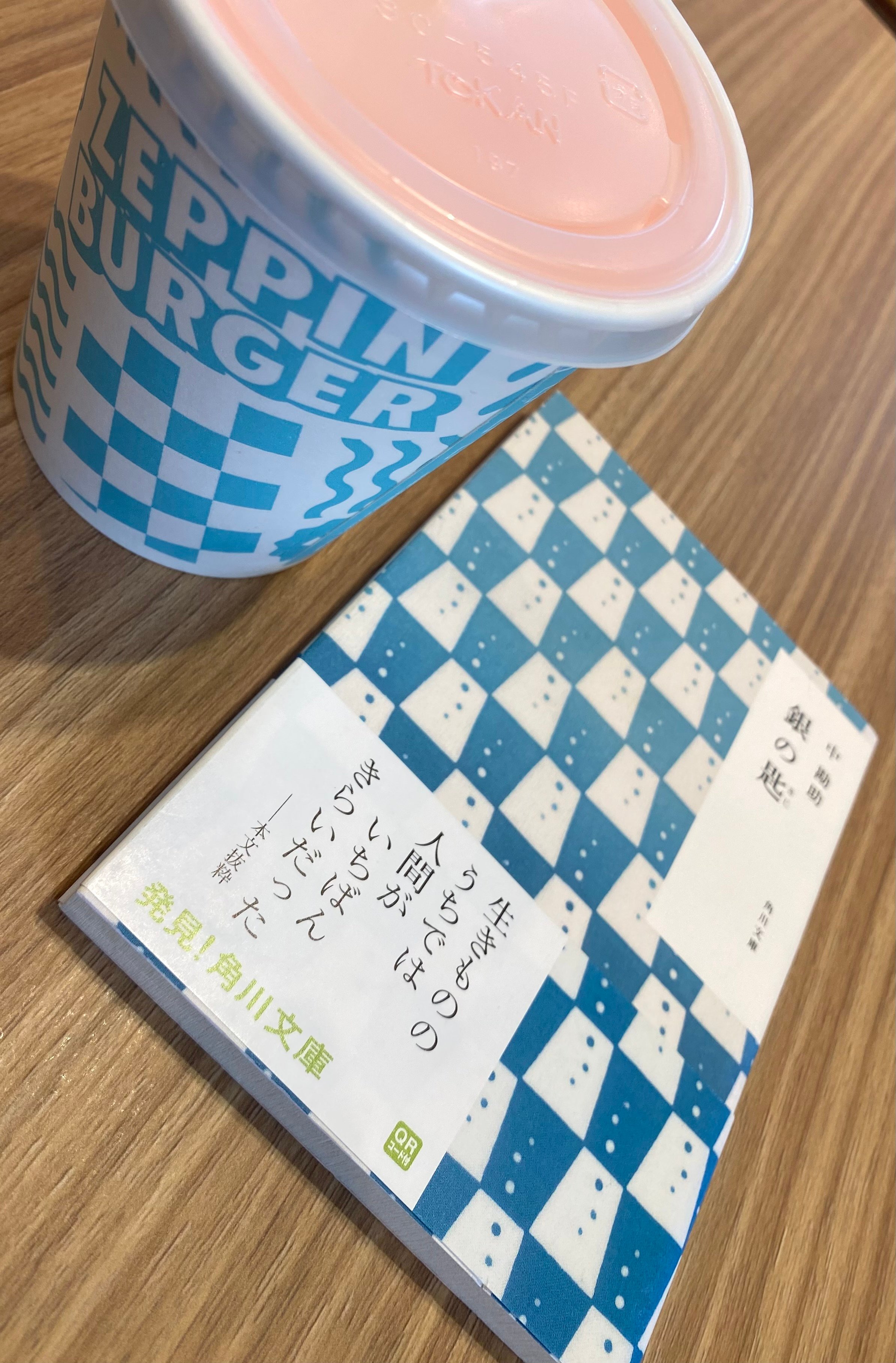 ロッテリアのいちごシェイキ飲んだら買った古本の柄と色がほとんど一緒でした。