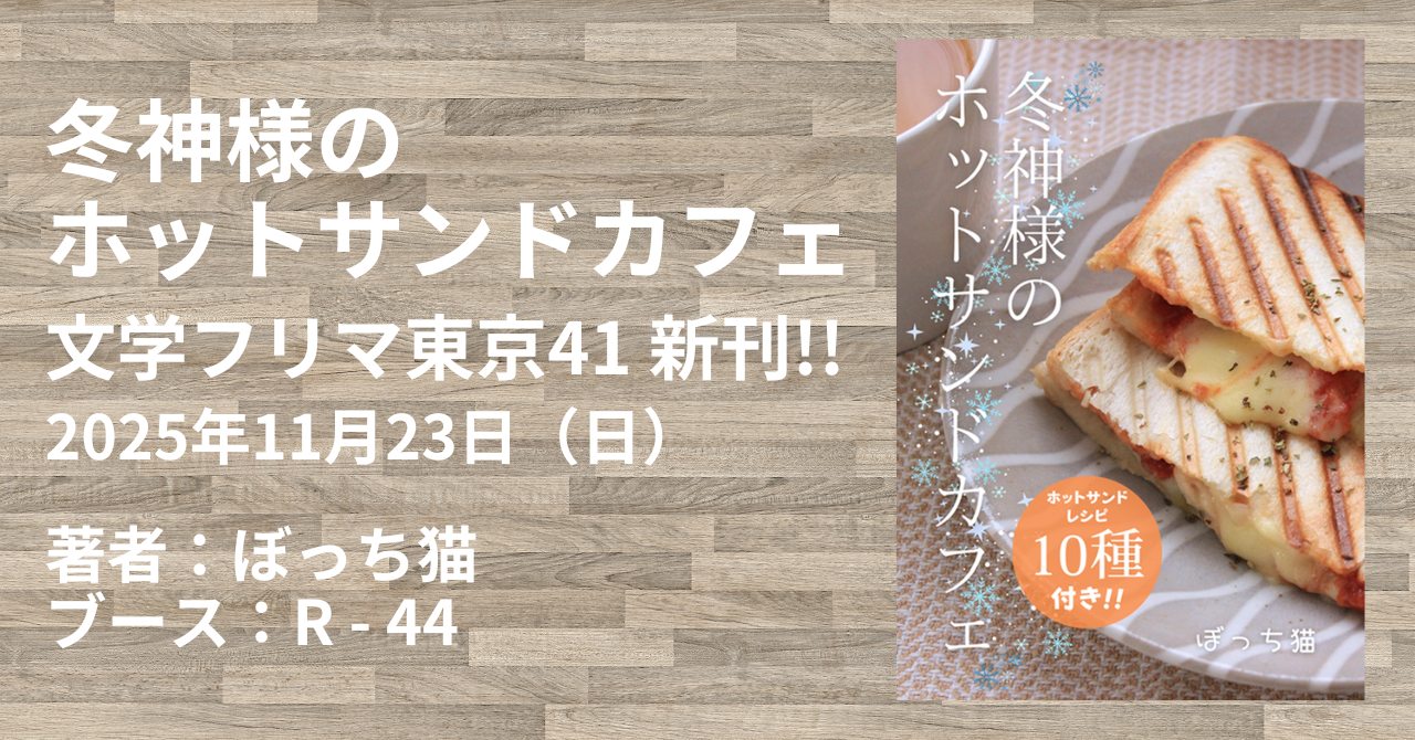 2025年11月23日(日)に開催される文学フリマ東京41にて、『冬神様のホットサンドカフェ』という同人誌を出します!