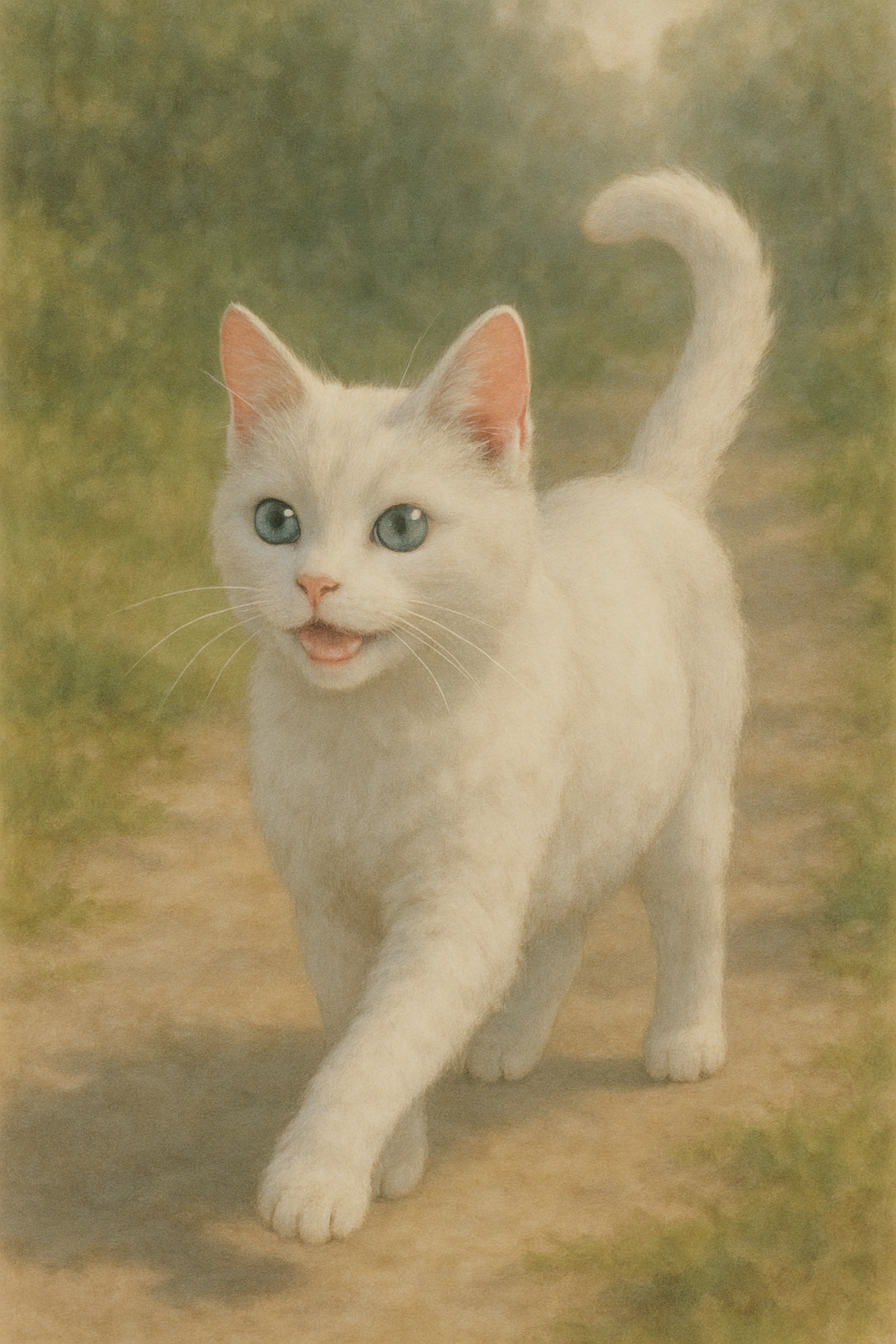 画像生成AIで『魔導士は白猫を飼っている』の白猫のソラを作りました。