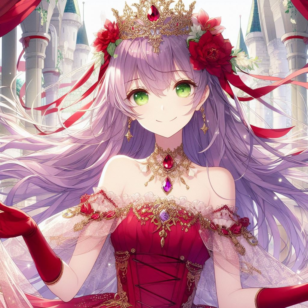 緑色の瞳に赤いドレス、むっちゃいいですねー