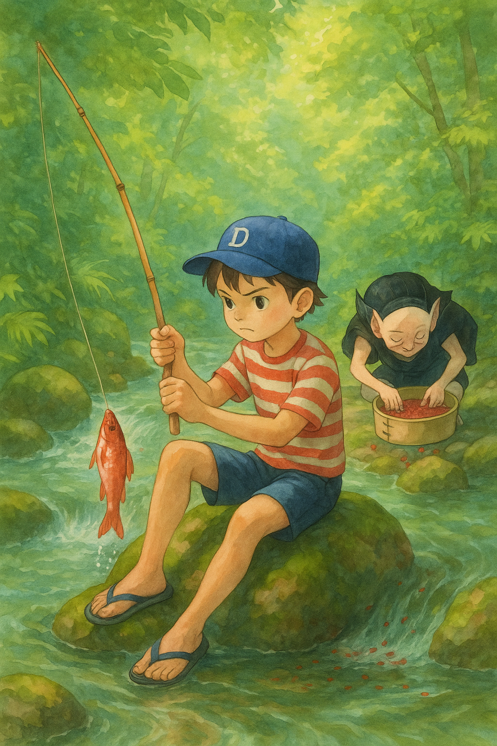 sabamisony様からのファンアート 『ソウタと小豆洗いのショキさん』挿絵②