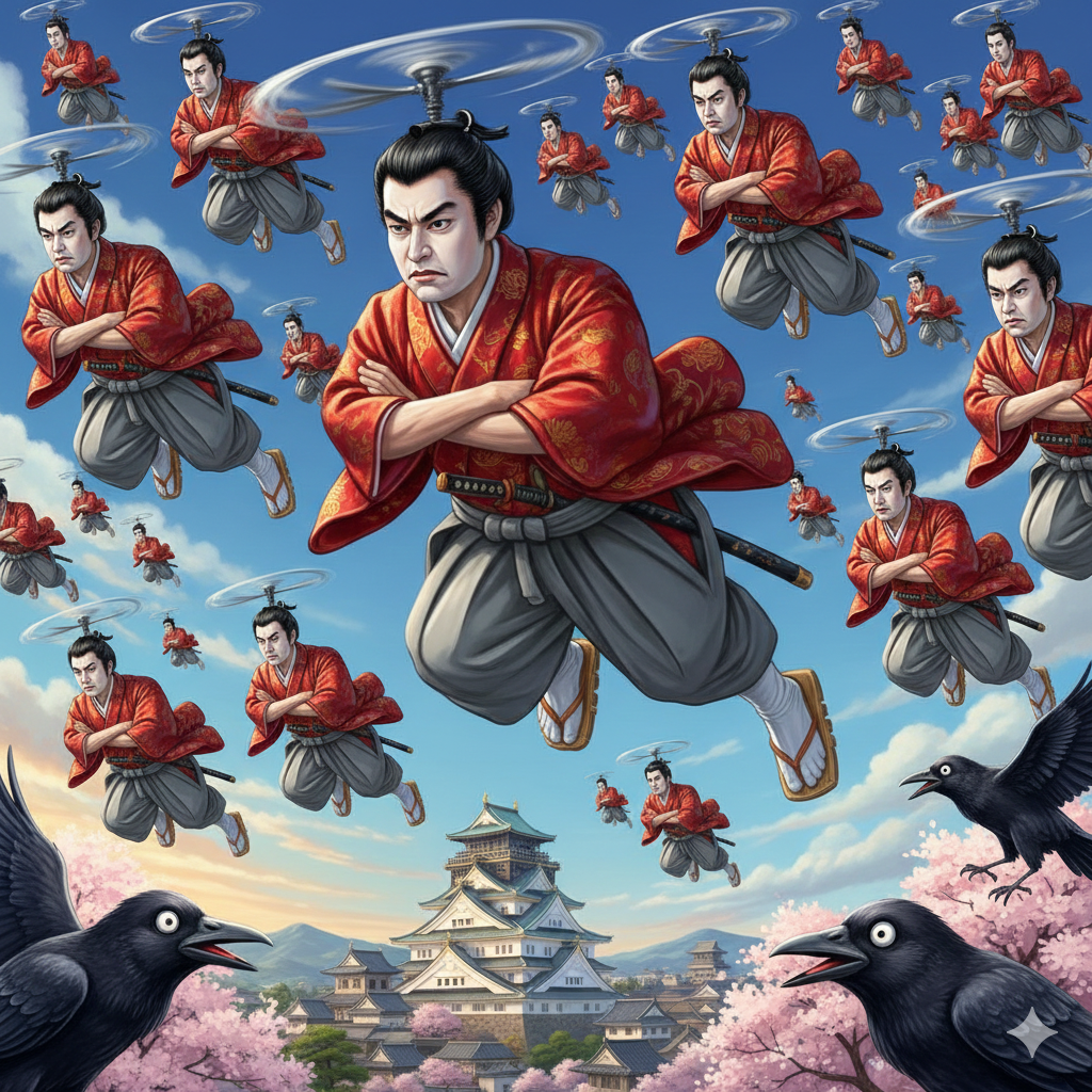 🎨【イラスト】「空飛ぶお殿様3&カラス🚁」