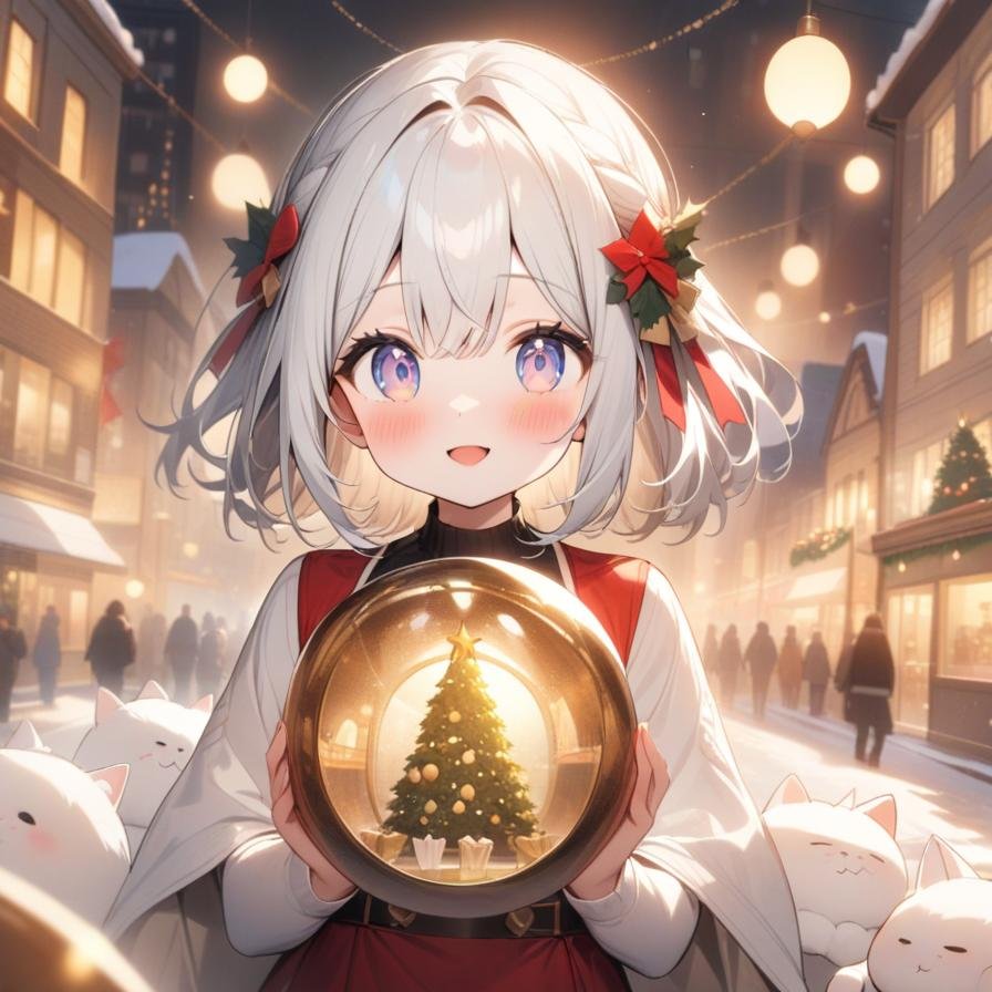 クリスマスツリーを水晶玉に写り込ませたこの構図、すごく良いね✨