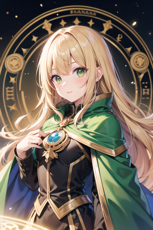 細かいプロンプトとは、何も入れないので、ただ緑の瞳と金髪の女性ということだけです。昔作ったところと同じなんだけれど、今回は露出が少なめになりました^_^