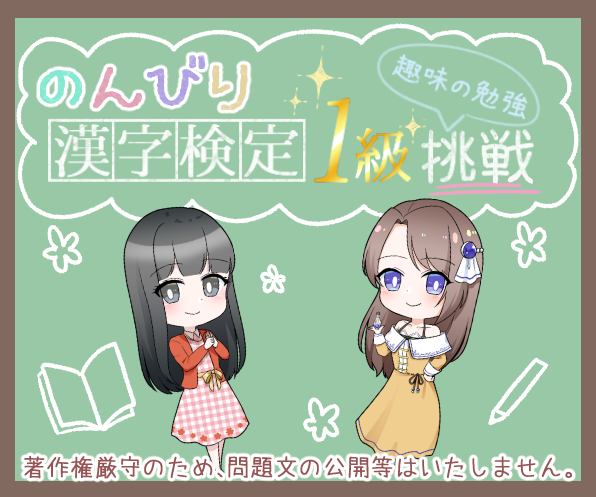 いつか漢字検定一級の試験勉強ができるよう、あっきコタロウさんにバナーを作っていただきました。活用できるように頑張りますね。