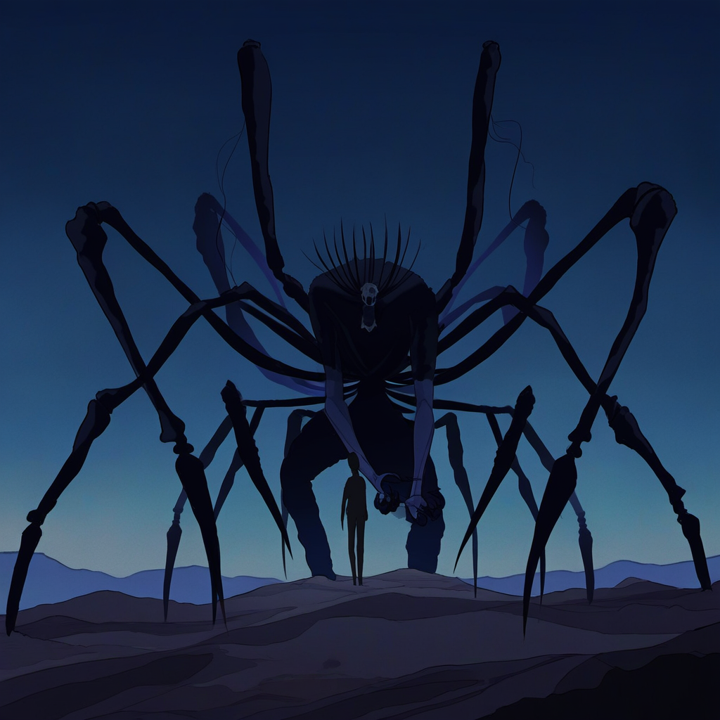 添付した画像は、生成AIを利用した、蜘蛛の妖魔のイメージカットです。だいぶイメージとは違うのですが、これはこれで迫力はありますね。