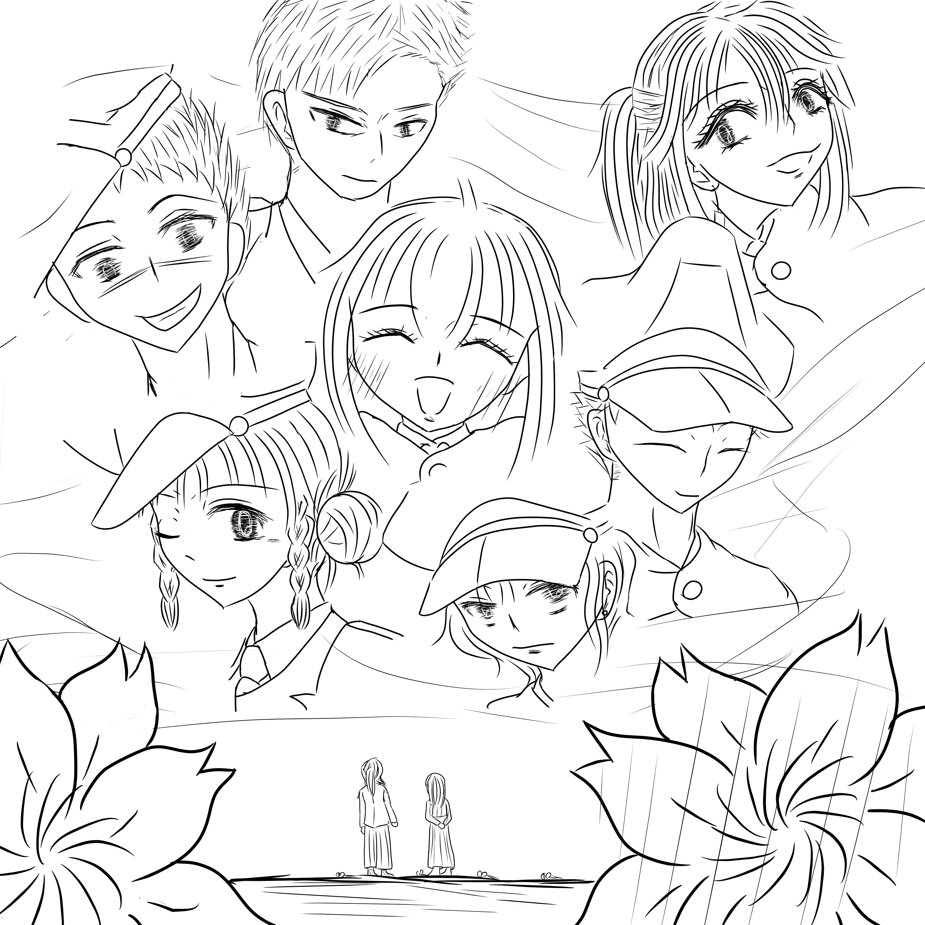 二人を先人達が見守っているような、二人が先人達に想いを馳せているような、綺麗なイラストですね。