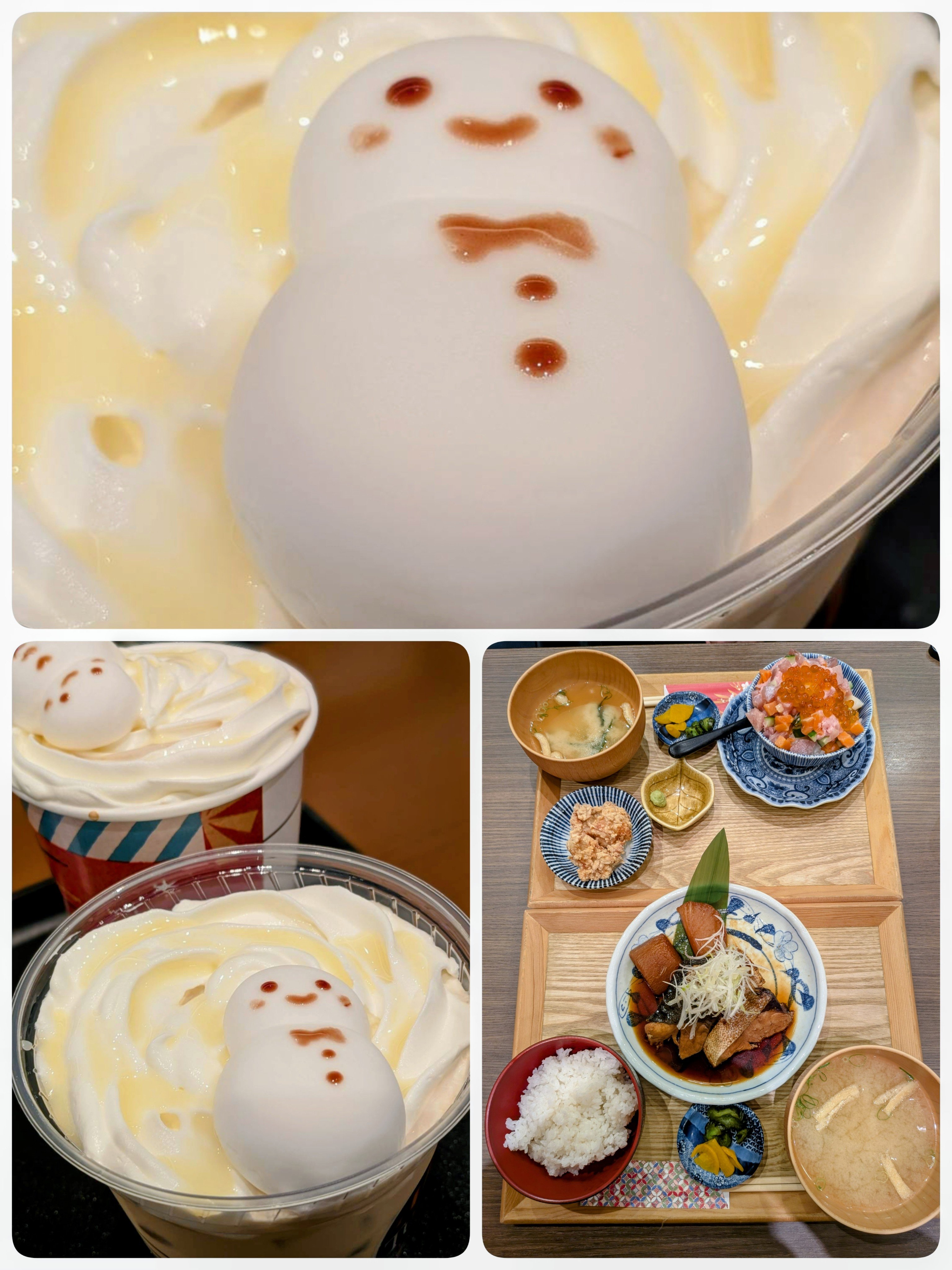 かわいい雪だるまに、おいしそうな定食がそれを表しています!
