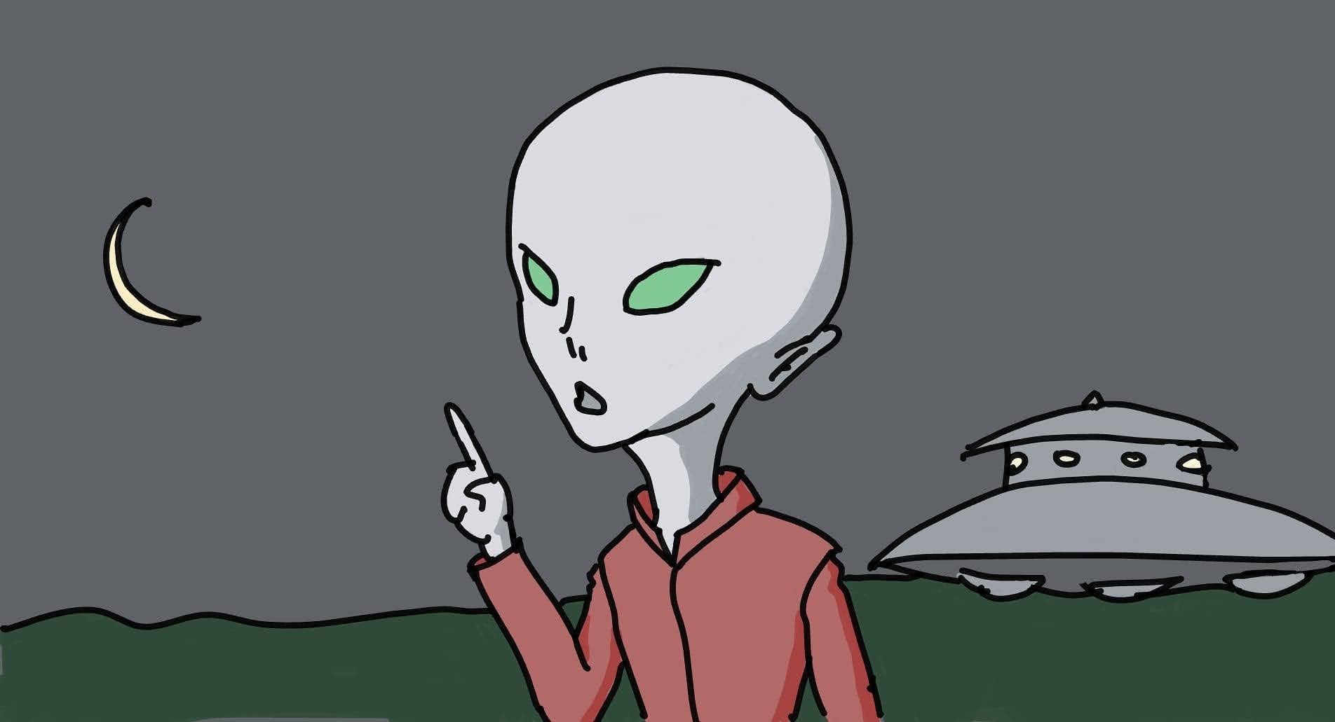 オレも暇を持て余して執筆活動中。小説も書くが、特に去年あたり、暇で暇で、こんなイラストを思いつきで描いてみたり。「宇宙人に会ったけど何か質問ある?」の挿絵にいいかも?