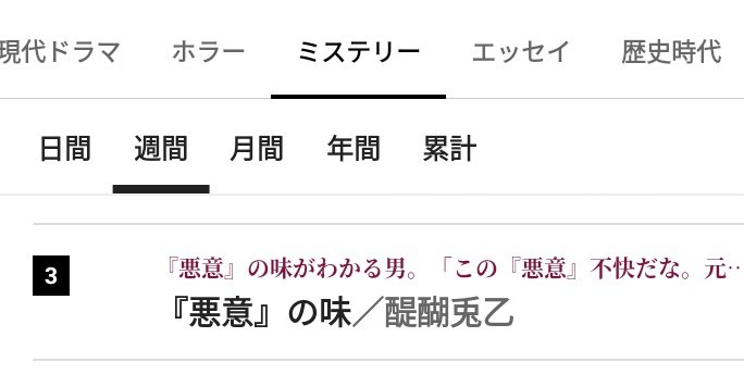 ミステリー週間3位!! 日間4位!! 獲得しました!!