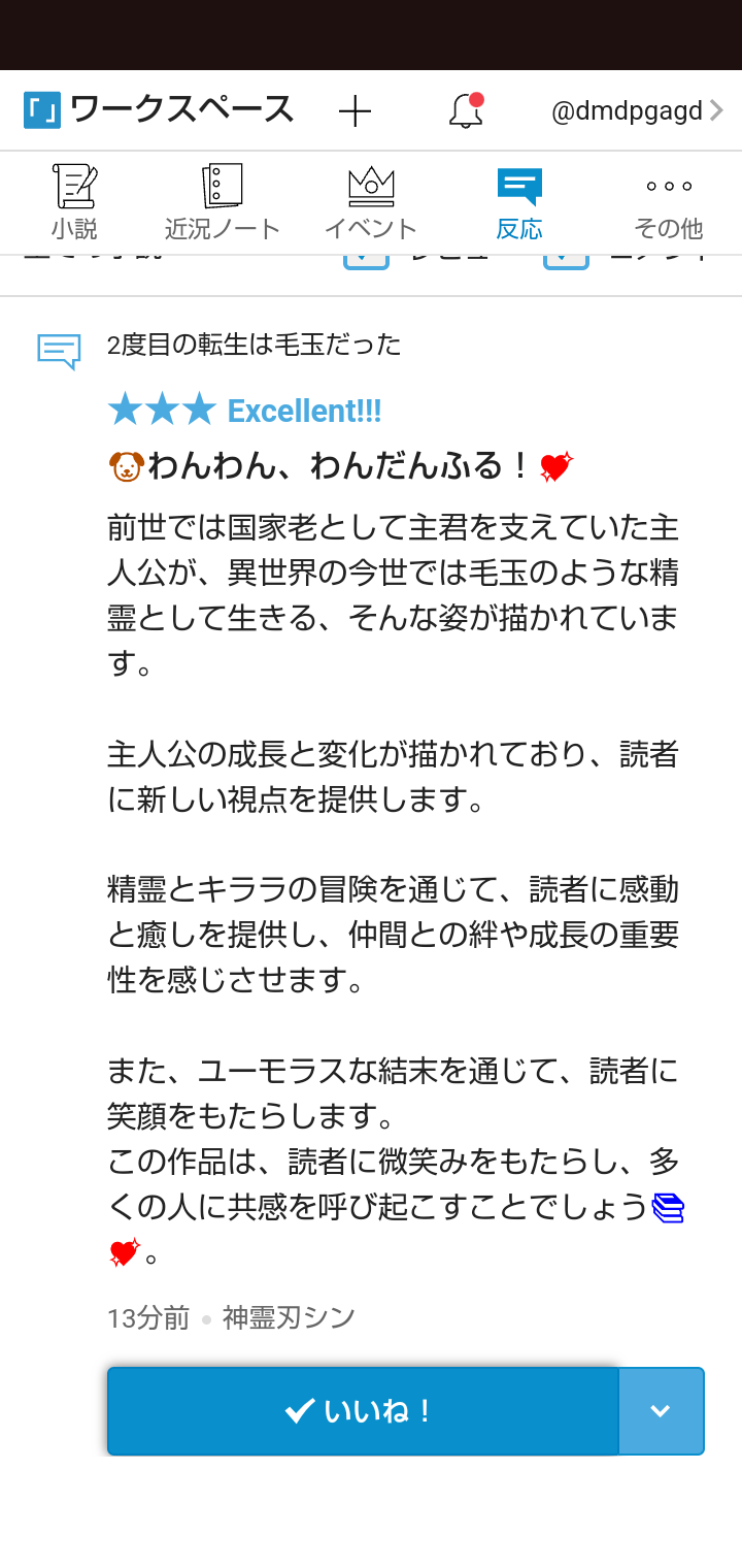 「2度目の転生は毛玉だった」に嬉しいレビューコメントを頂きました。