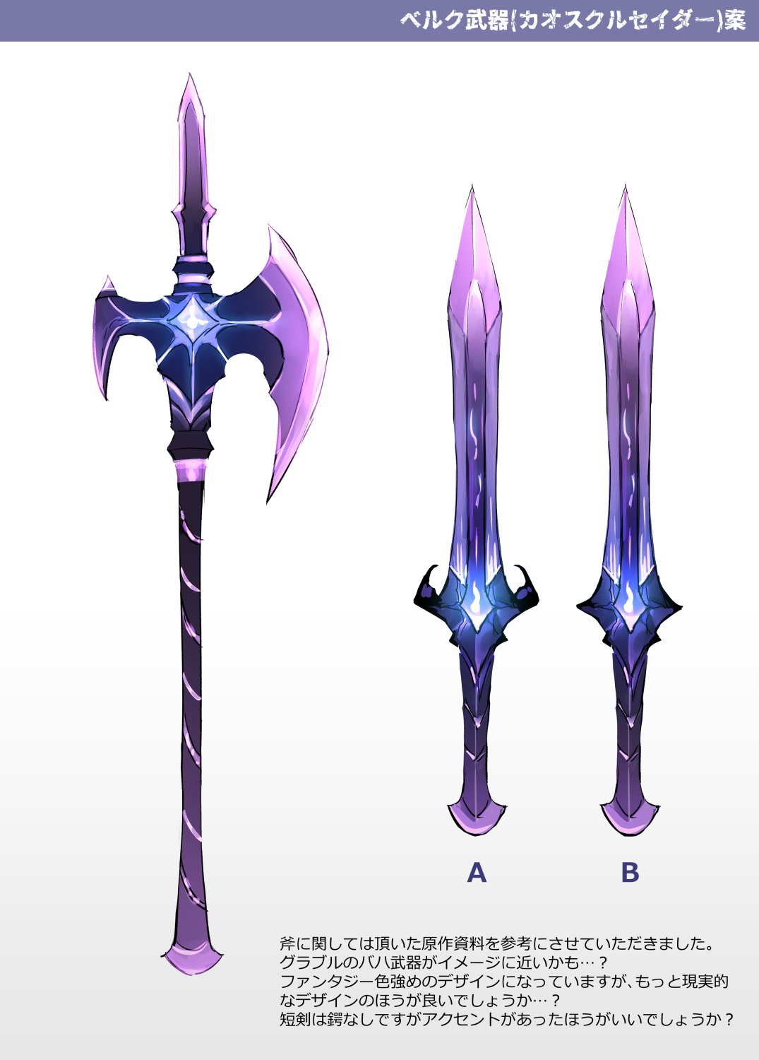 カオスクルセイダーは基本的にはベルクが良く使う小剣と手斧の姿となっていますが取り込んだ魂達が使っていた武具ならばどんなものでも具現化できるのでベルクは状況に応じて変えています。