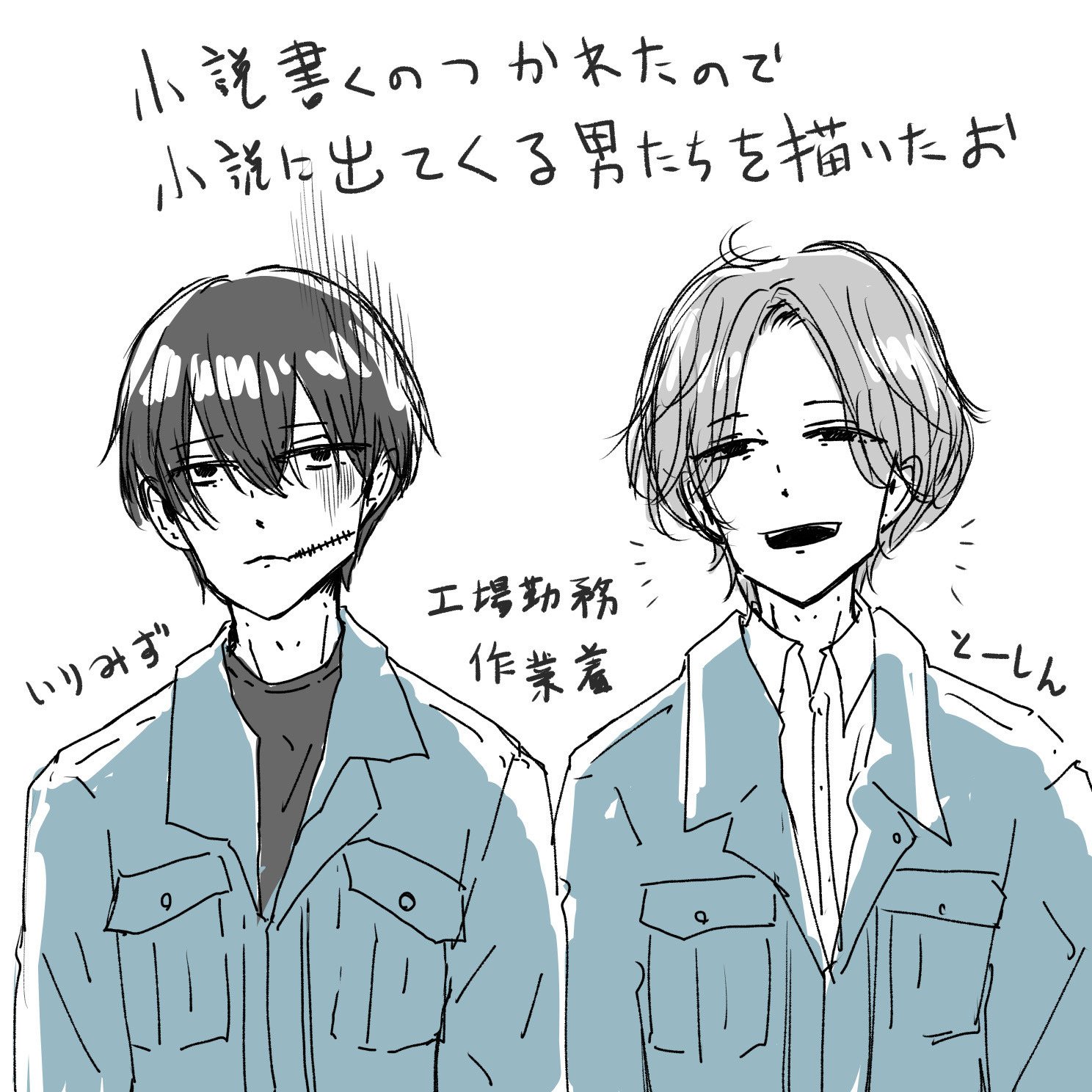 画像は文字書くの飽きて描いた今書いてる小説のFA(自作のFAを描くキモ作者)