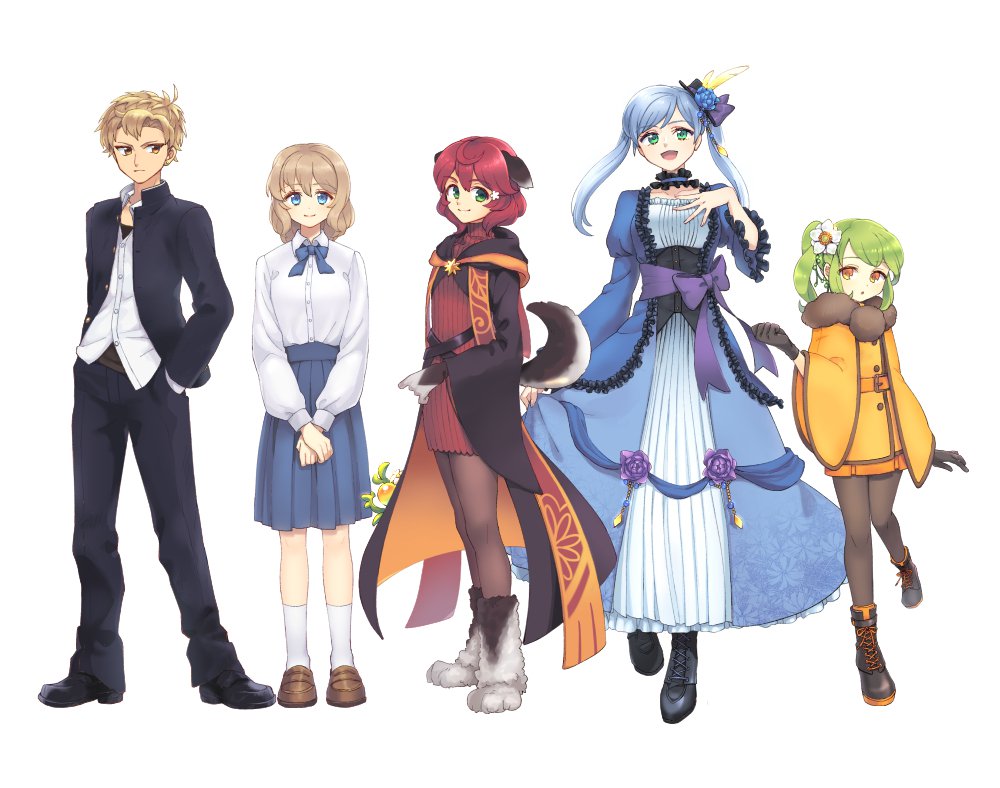 左から佳果、夕鈴、楓也(もぷ太)、アーリア、ヴェリスとなります。