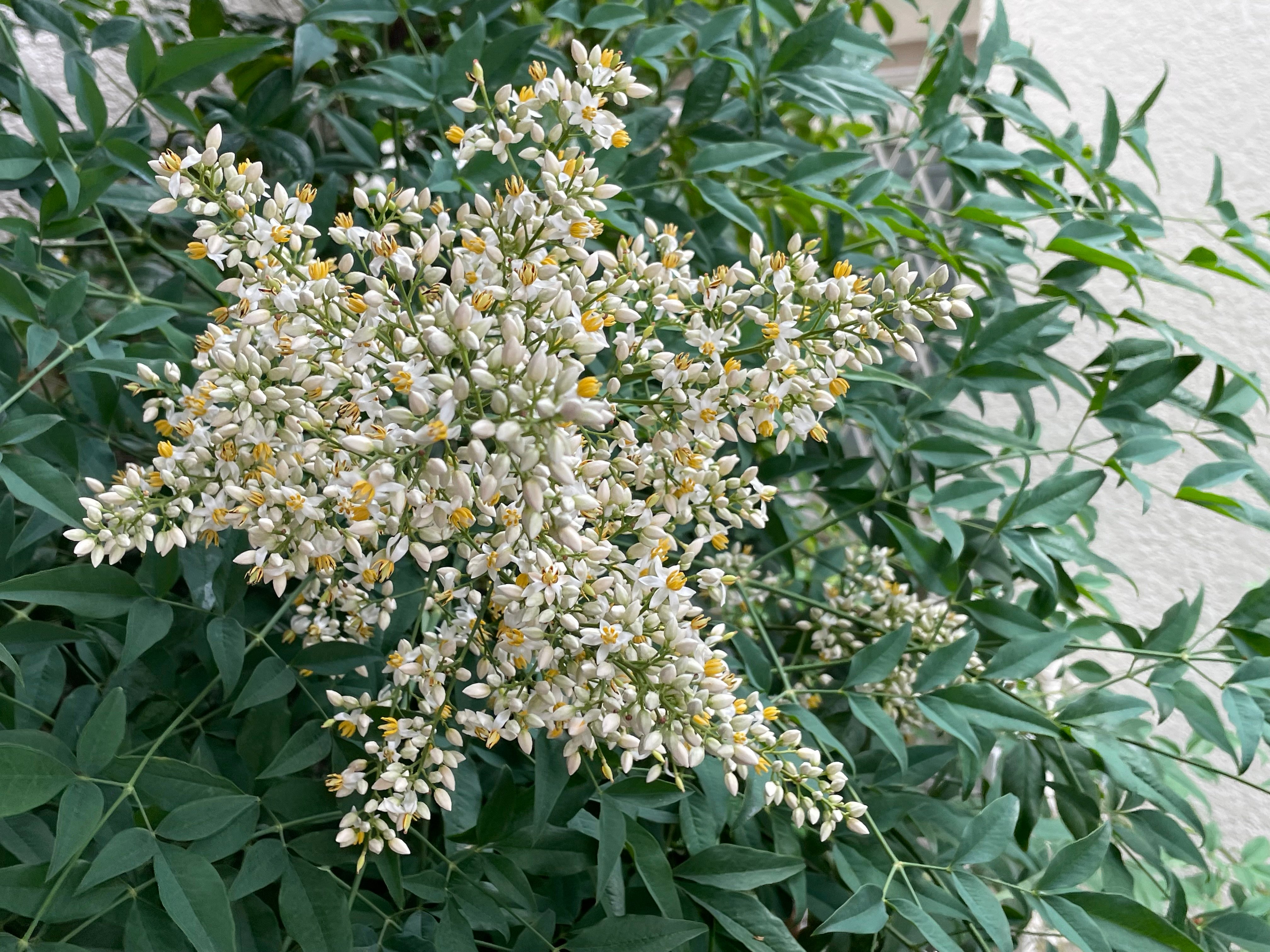 画像について書き足すのがタッチの差で遅れましたが、庭の南天の花です。六月頃の写真ですが、星のような形状できれいだなと思って撮りました。