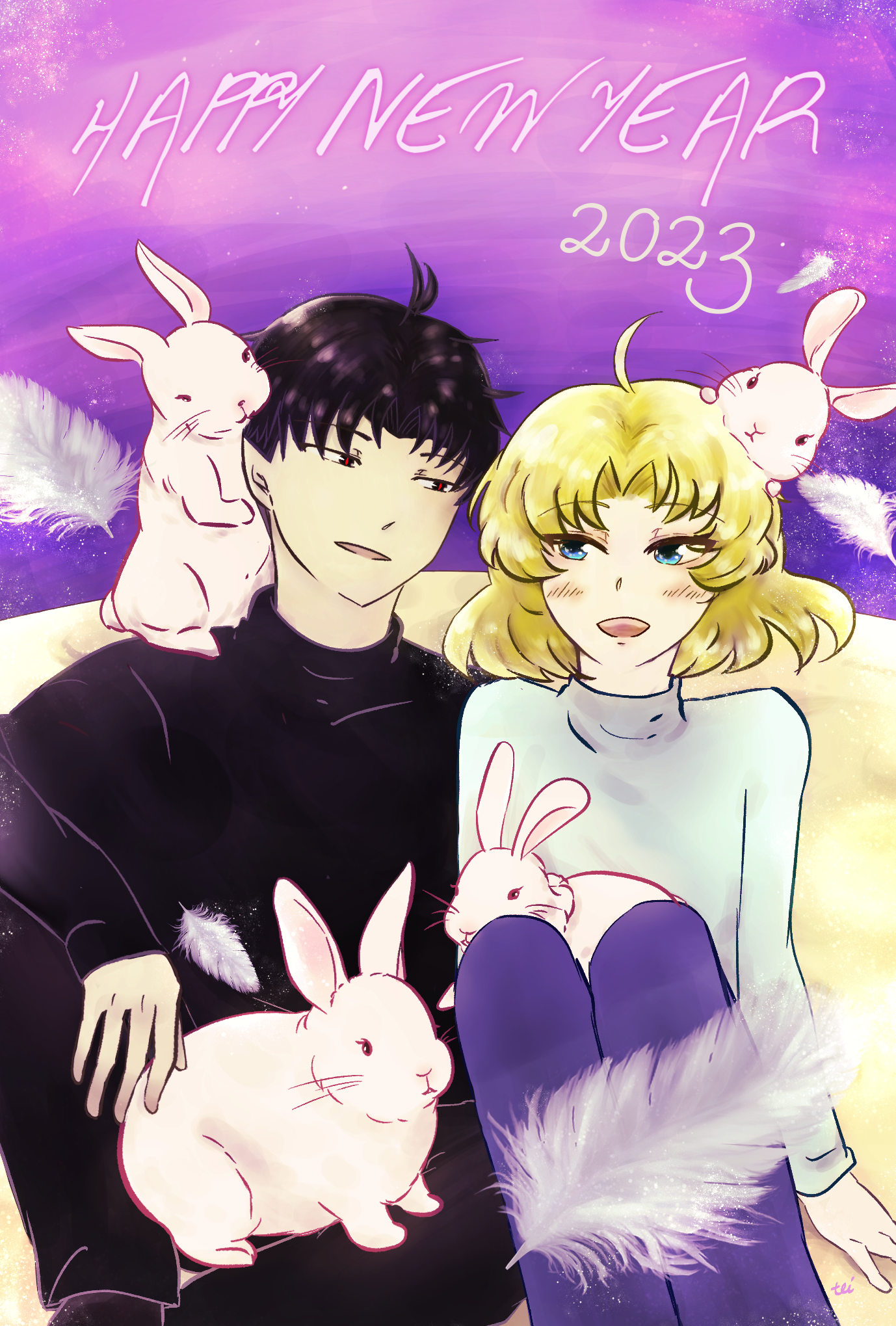 元日に上げたものとは別に描いていた年賀状です。拙作「天使と悪魔」シリーズのふたりです。