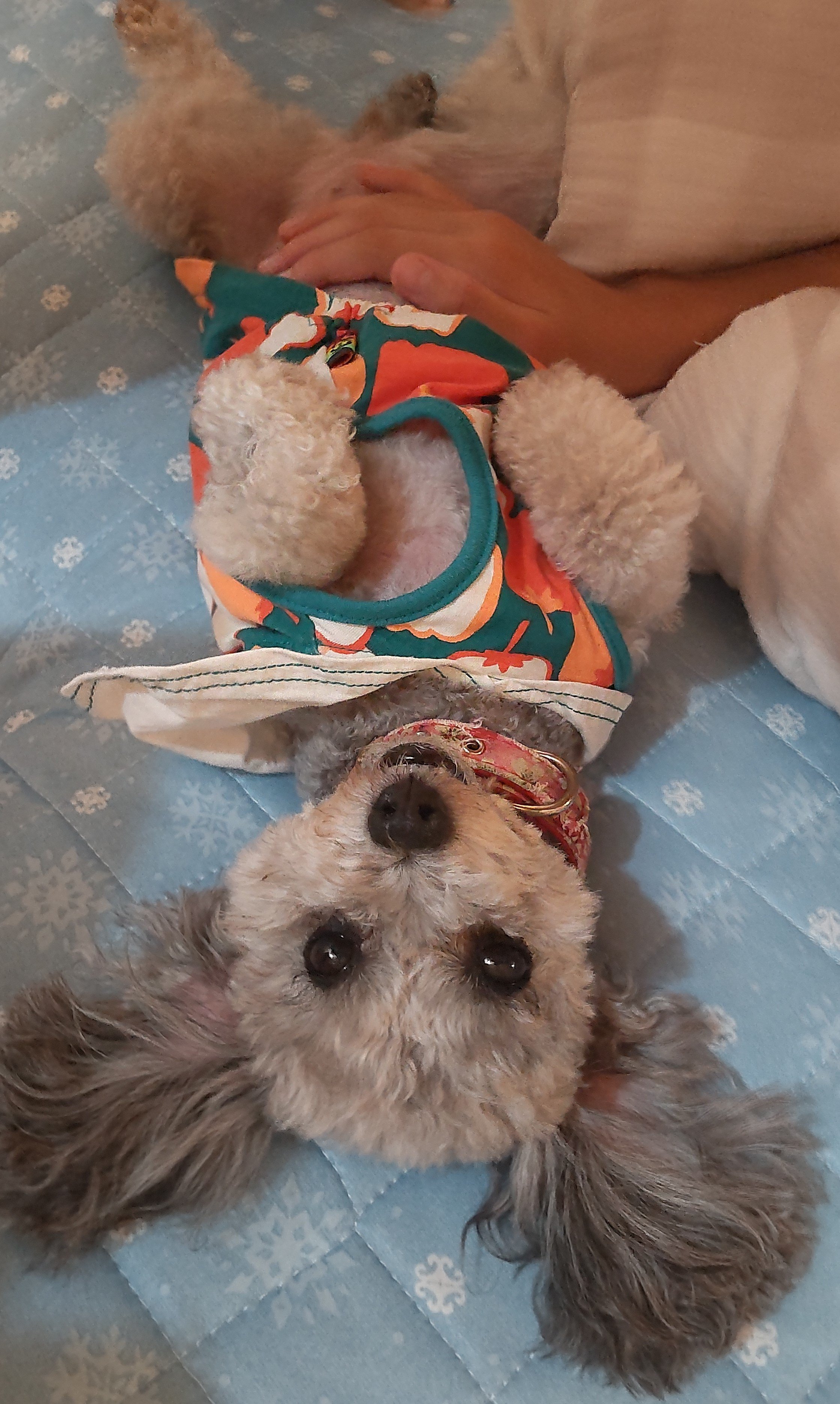 娘がお腹さわさわして気持ちよさそうです(*^-^*)