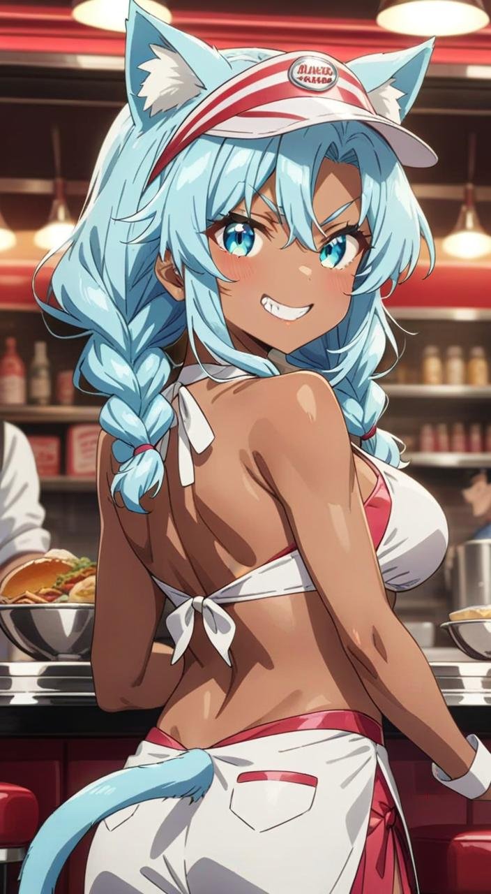 昔ディケーさんやソロアちゃんがバイトしていたダイナーでバイト中のクロアちゃん