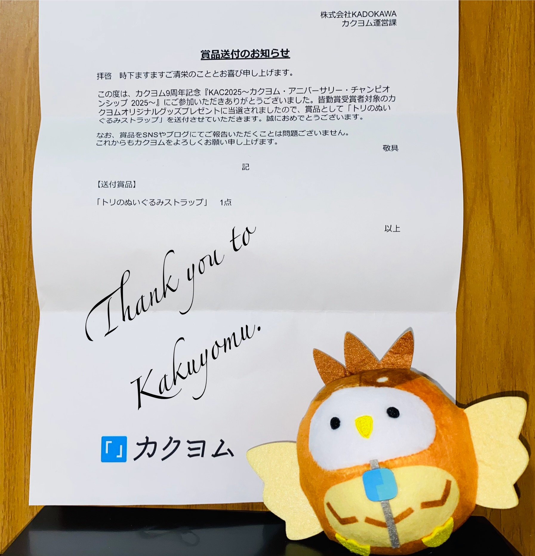 この度、カクヨム運営部様より、大変嬉しいお知らせとともに素敵な賞品が届きました。
