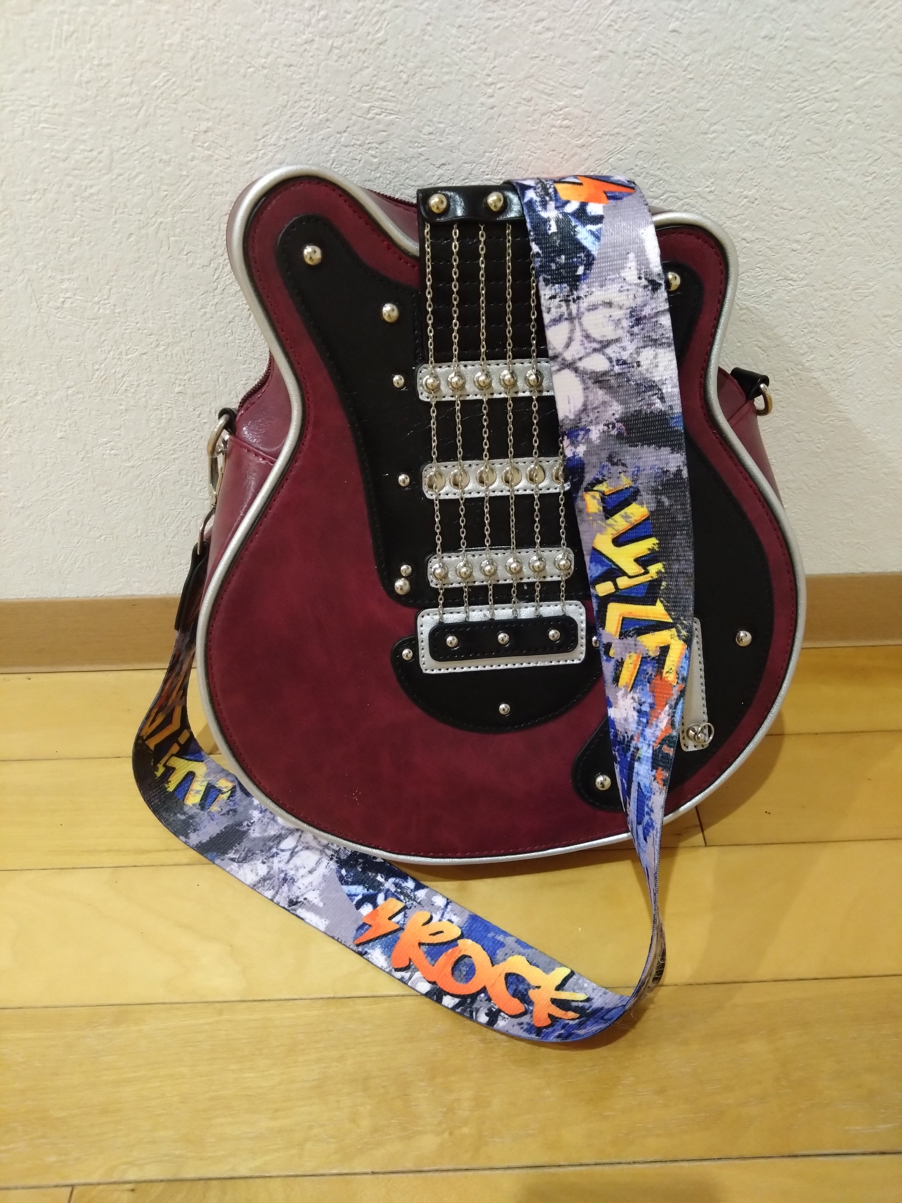 このギターバッグ、かけて行くと大概「カッコいい!」って言われます。