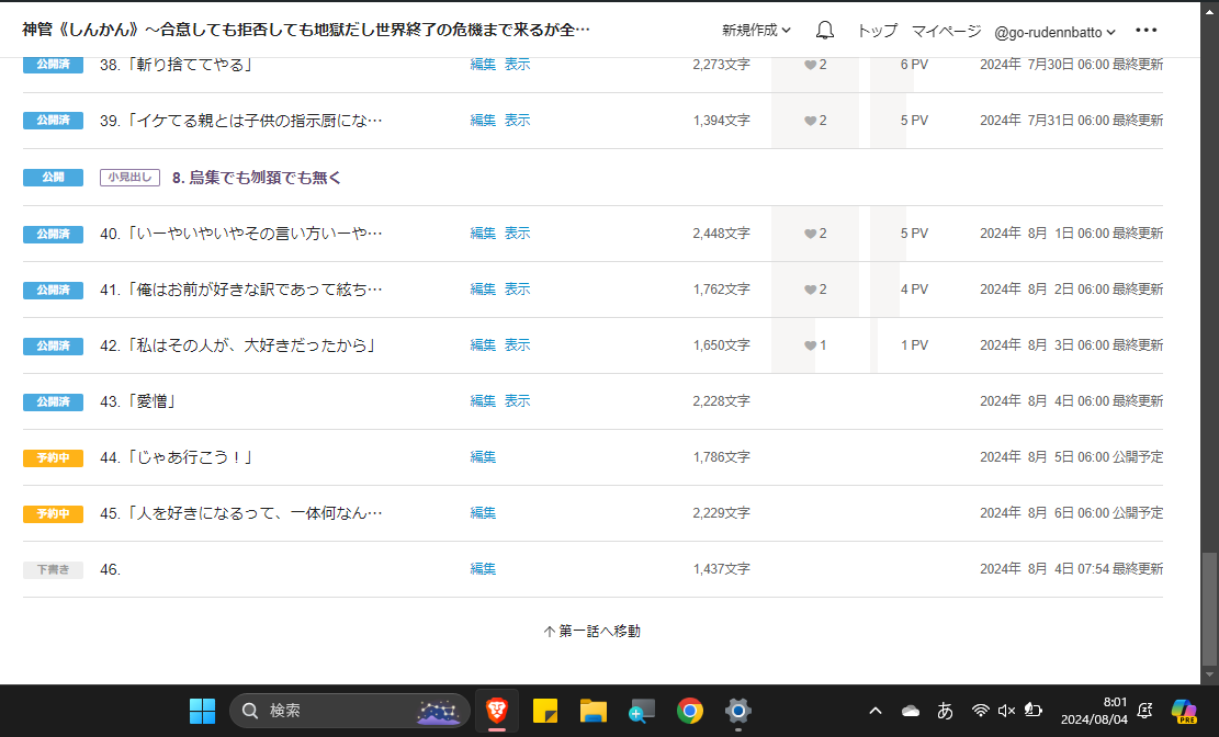 https://kakuyomu.jp/works/16818093073970065453何とか毎日更新中です。ちょびっとストックが出来ましたので、添付している画像をご覧下さい。