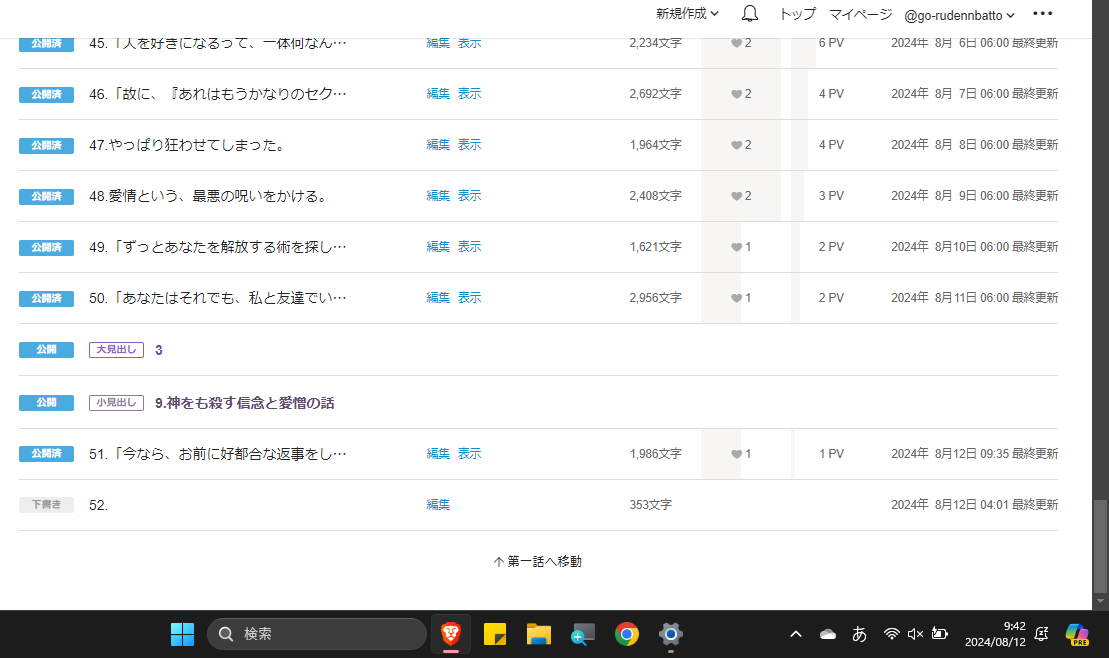 ヒュ~ウ最終章まで辿り着きつつ弾切れだぜェ! どうしよ! 書くしかない! 毎日1話分書いて即公開だッ! あと9章がタイトル付け忘れていたのでさっき足しときました。ボロボロだぜッ!