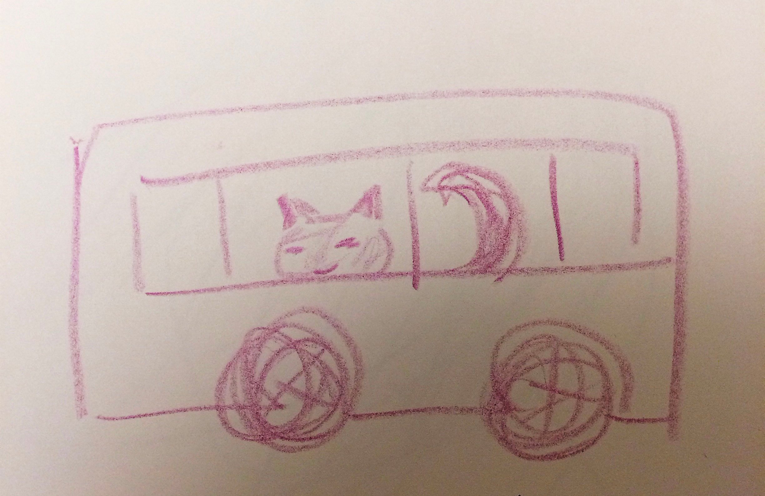 何かしら癒し回復のお手伝いができないものかと画像フォルダを探してみたところ、むかし孫(うちの長女)にせがまれて義母が頑張って描いてくれた『となりのトトロ』のネコバスが出てきました。