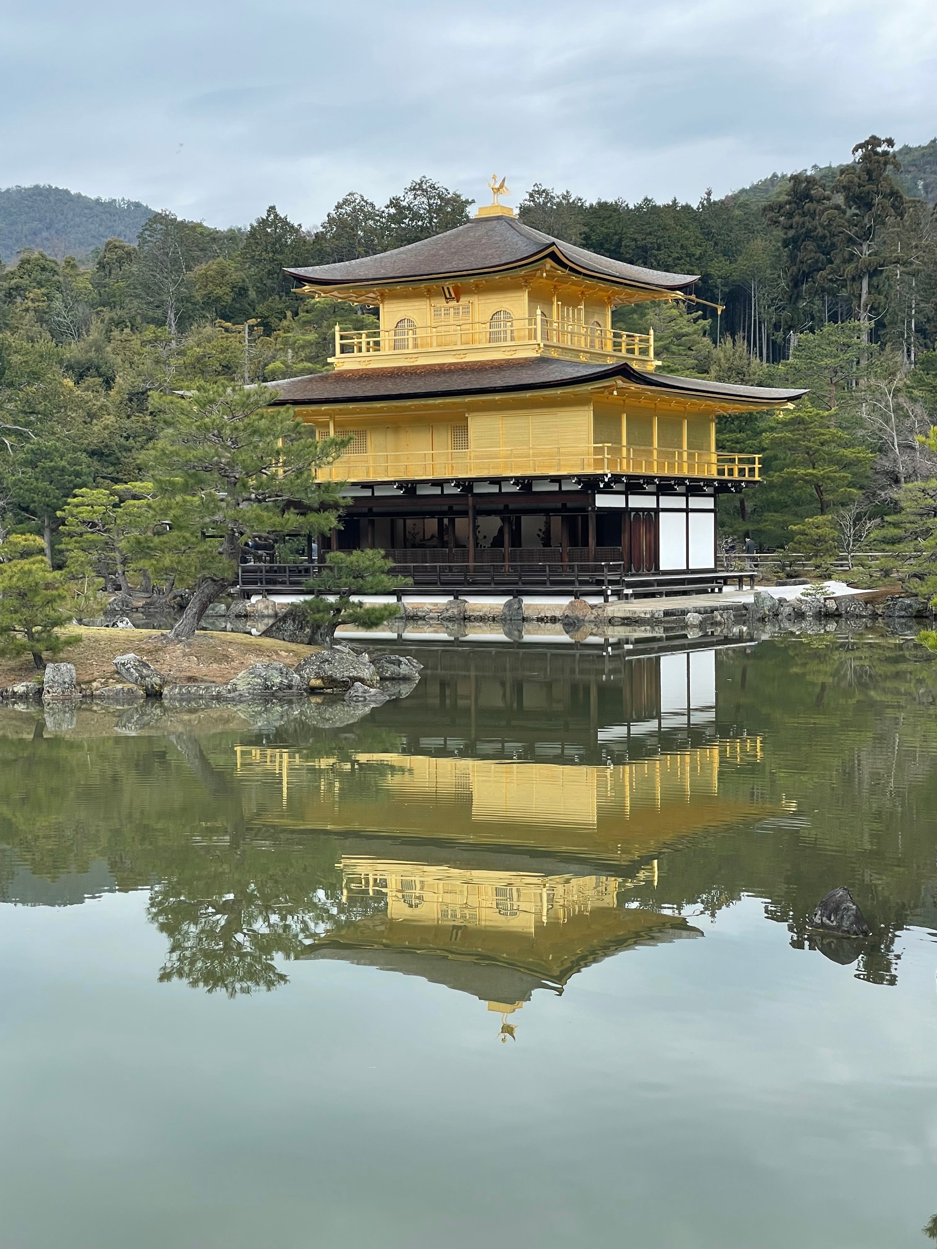 金閣寺、水面にも綺麗に映っていて美しいです。