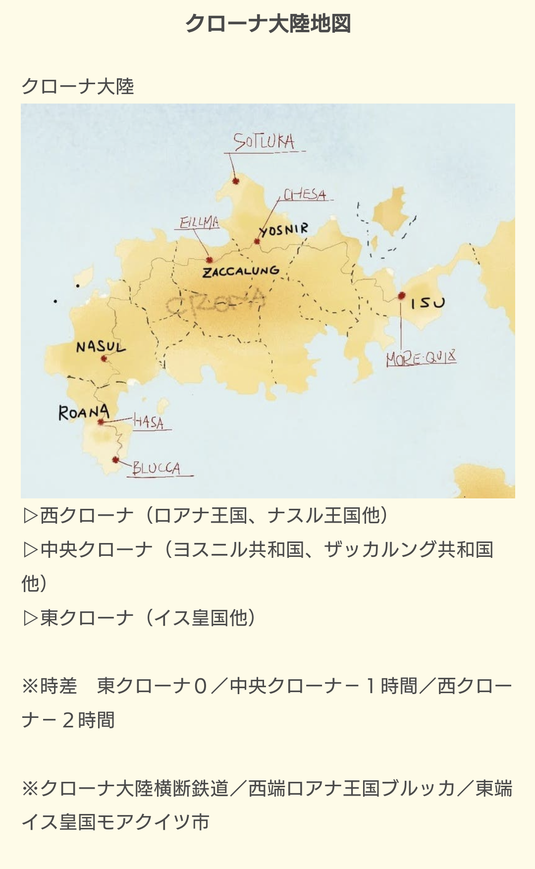 作中への挿画機能がないためこちらにクローナ大陸地図を公開します。