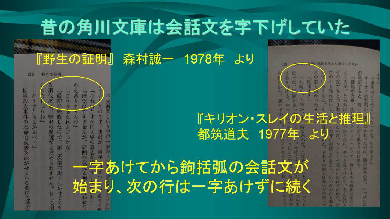 添付画像その2 『字下げする会話文 昔の角川文庫』