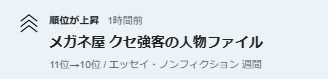 エッセイ・ノンフィクション週間ランキング 11位→10位❗