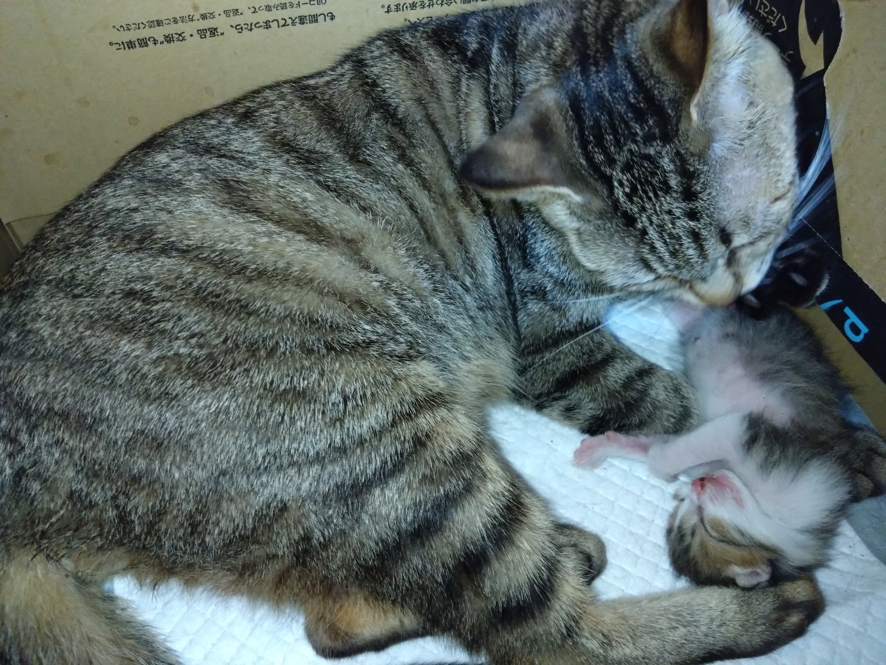 お迎えした翌週に、もなかが子猫を出産しましたw