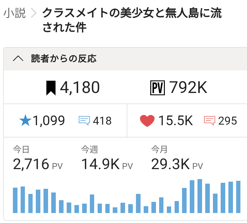 無人島のフォロワーがもう直ぐ4200、★も1100を超えそうです。