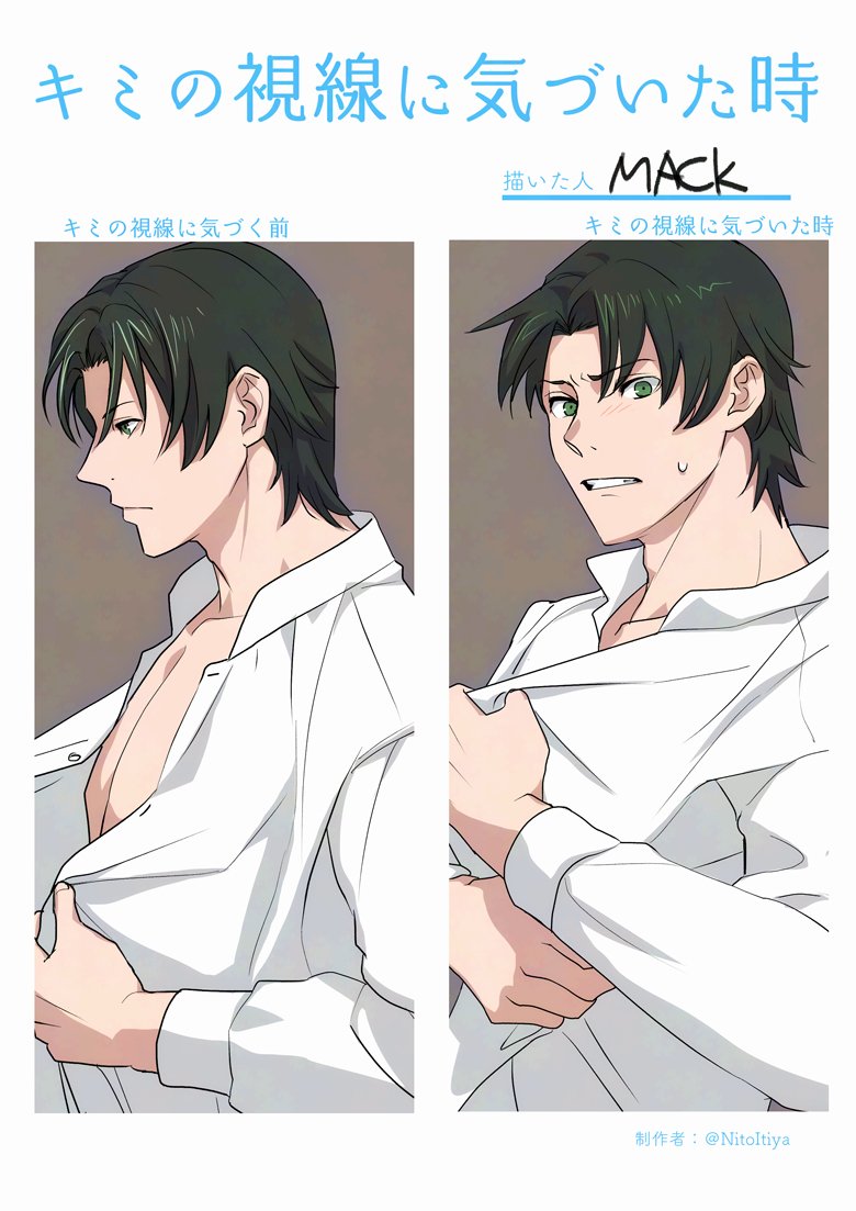 Xで流れてきた「キミの視線に気づいた時」というテンプレートのお題に沿って絵を描いてくださったのですが、うちのジークヴァルトのお着替えシーンに当てはめてくださいました!