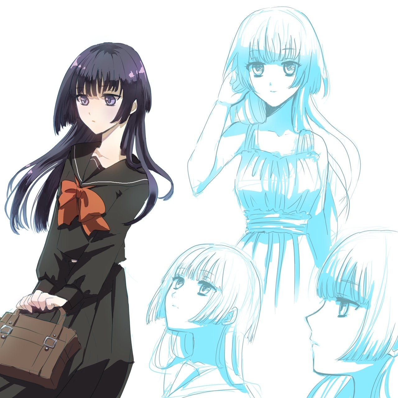 作者が、黒髪姫カットの不思議な女の子が好きなので、柚月のビジュアルはこのような感じになりました。