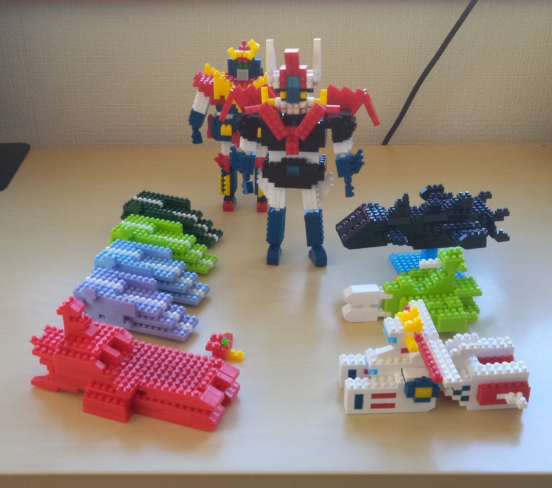 100円のブロック玩具ですが、どれも100円では作れなかったと思います。特にロボット2つは、少し大きめになってしまいましたから。