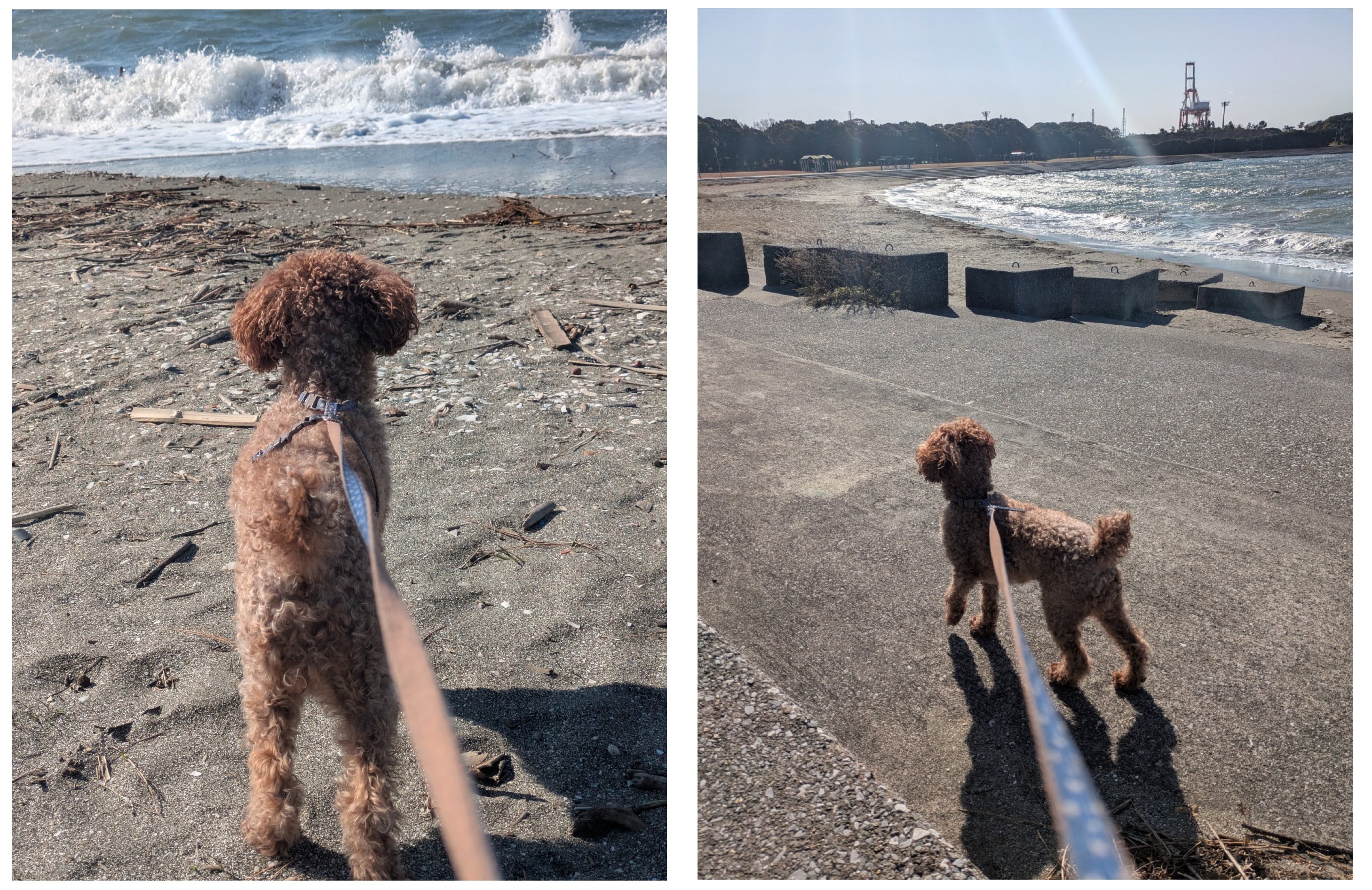 写真は、その海辺の公園で散歩した様子です。強風による波の激しさが、この写真からも伝わるのではないでしょうか。公園の駐車場には車も結構ありましたが、さすがに砂浜は誰もいませんでした。
