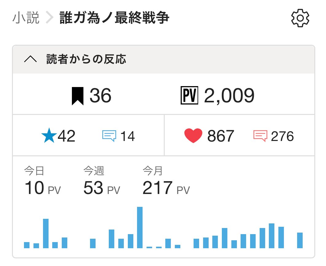それが、連載中に2,000PVを達成し、また、最新話まで追いかけてくださっている方が何人もいらっしゃるこの現状を、嬉しく、そして本当にありがたく思います。